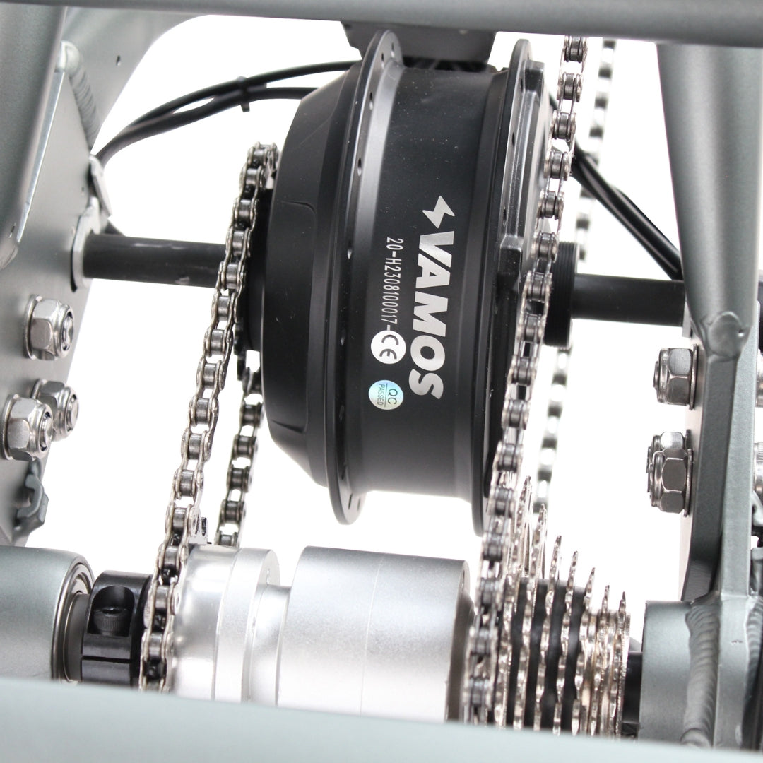 Vamos Bikes are classified as electrically power-assisted cycles with a continuous rated power of 500 watts. The motor automatically disengages once the bike reaches a speed of 25km/h. If needed, the power output can be further restricted to comply with specific regulations. Throttle use is permitted only on private property and must be disabled when riding in public spaces.