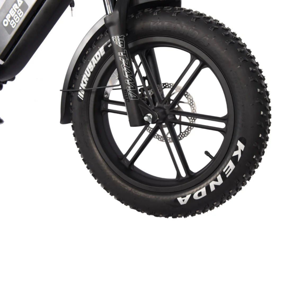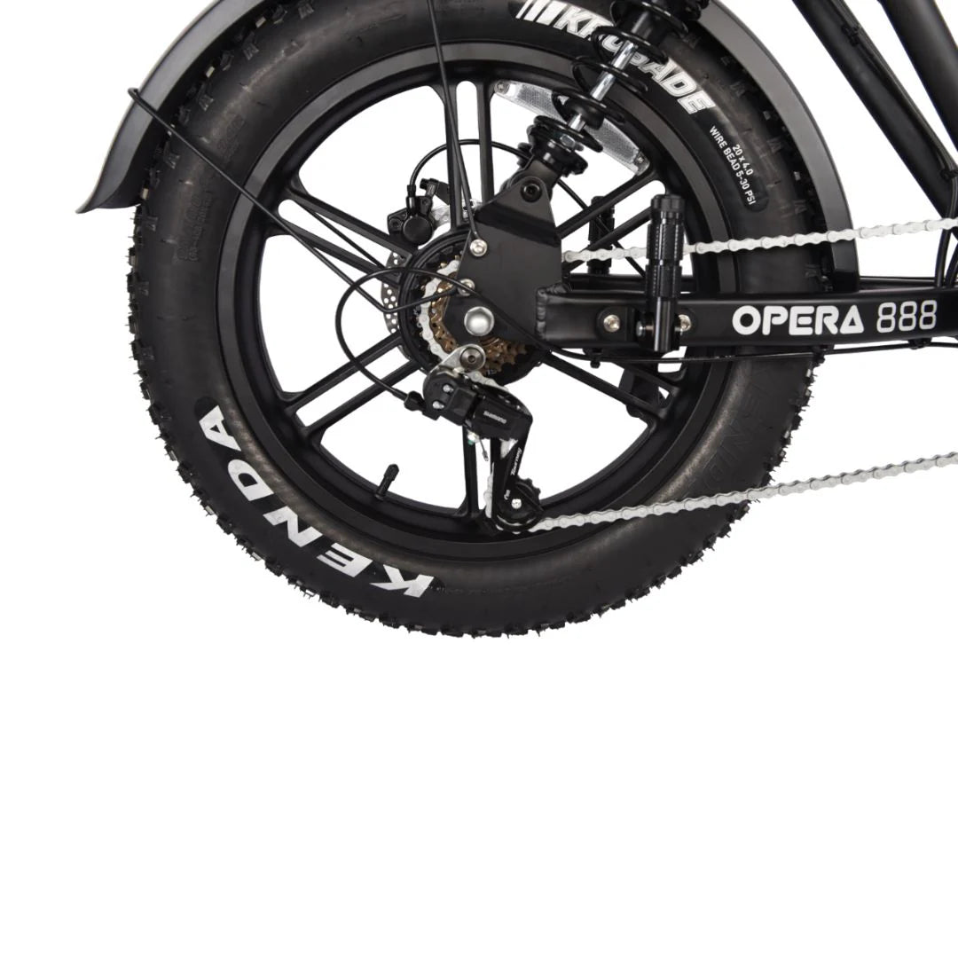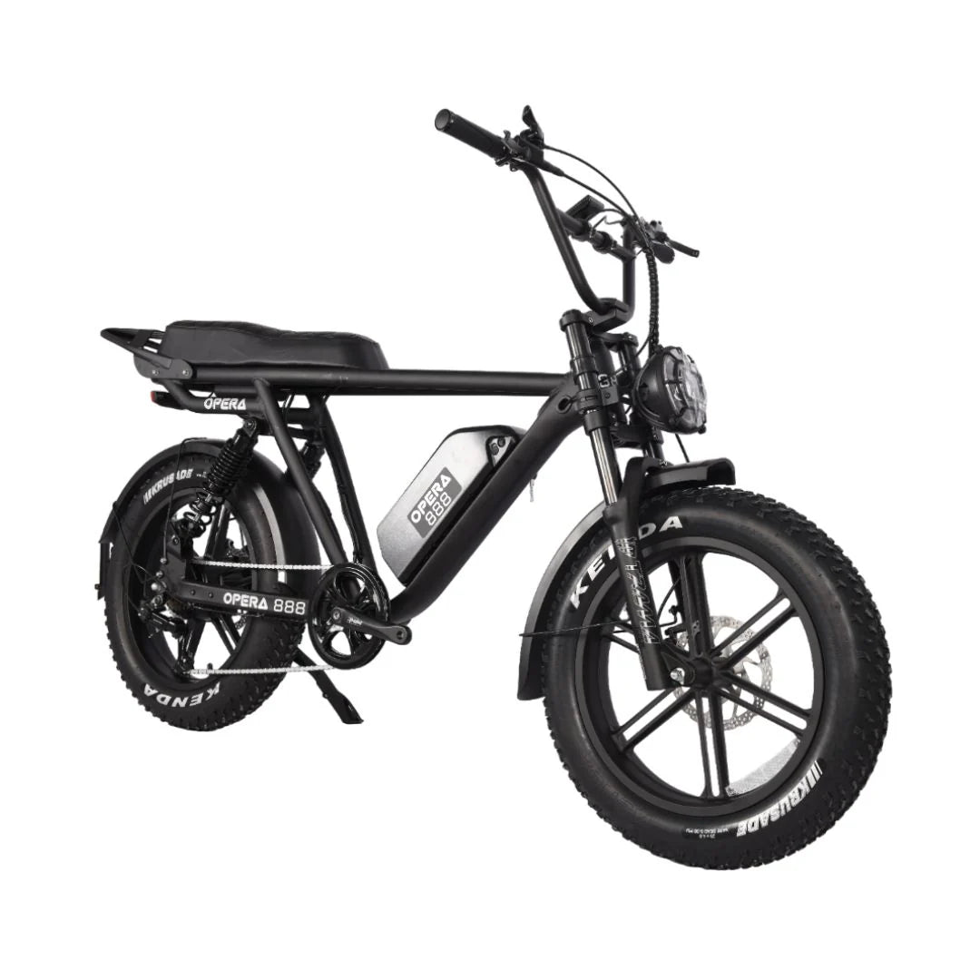 Powered by a 750W rear hub motor with 80Nm torque, the Opera 888 handles city streets and off-road trails with ease. Its 48V 20Ah fast-charging battery provides up to 816Wh capacity, reaching a full charge in just 4 hours for extended adventures.