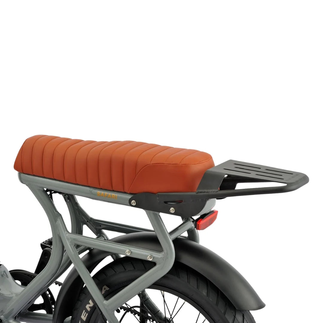 From its vintage-styled tan leather saddle to its integrated lighting system and sturdy rear rack, every detail of the Safari Glide is engineered for style, comfort, and practicality. It’s more than just an e-bike — it’s a statement of freedom and design excellence.
