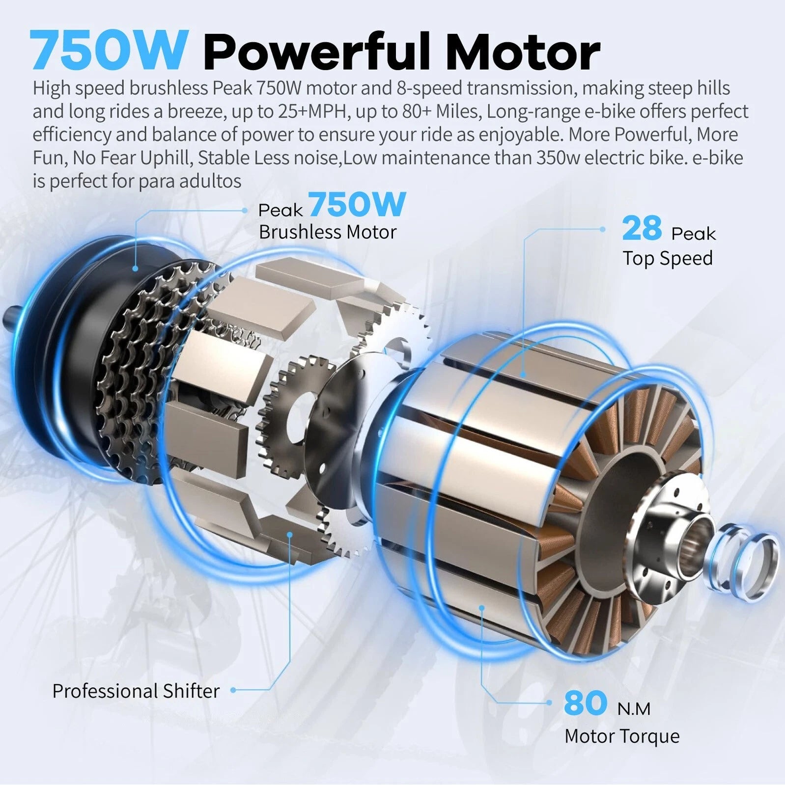 Adjustable Seat, Display, Kickstand, Lithium Ion Battery, Pedal Assist, Reflectors, Traction Aid
