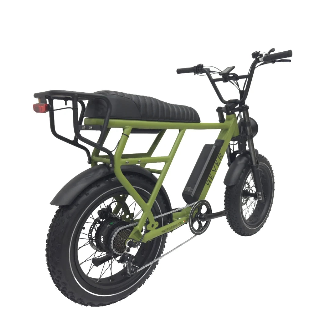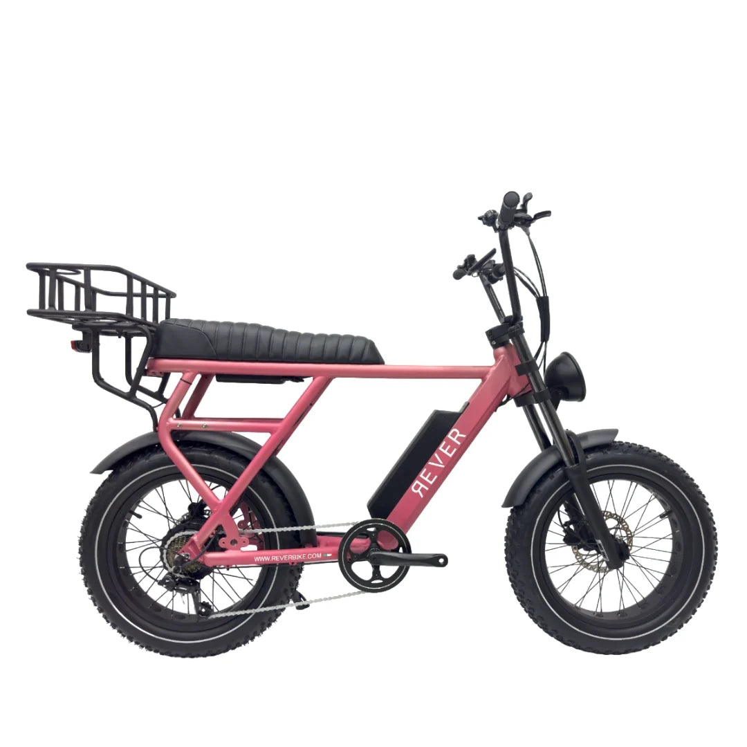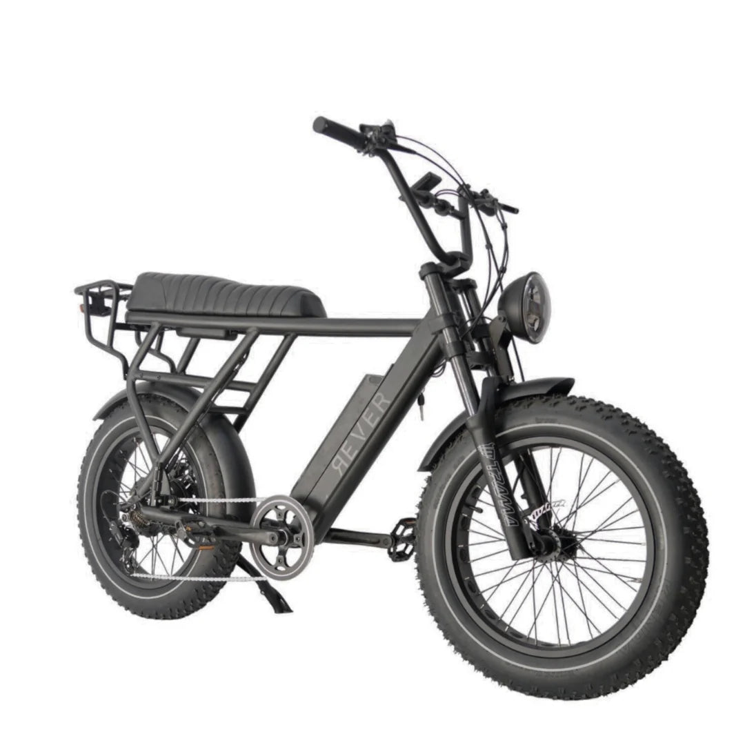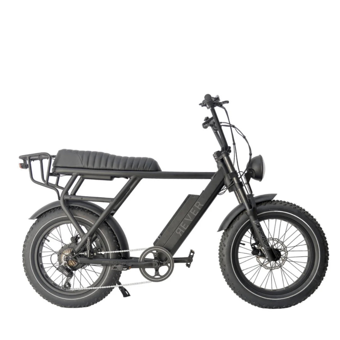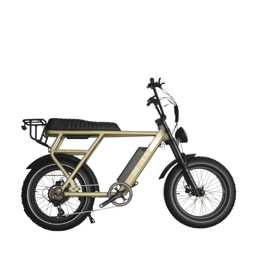 REVER Canyon embodies the perfect balance between vintage aesthetics and modern electric power. Designed for riders who value both performance and classic style, the Canyon features a large black leather dual seat for two, matching grips, and a bold presence that turns heads wherever it goes.