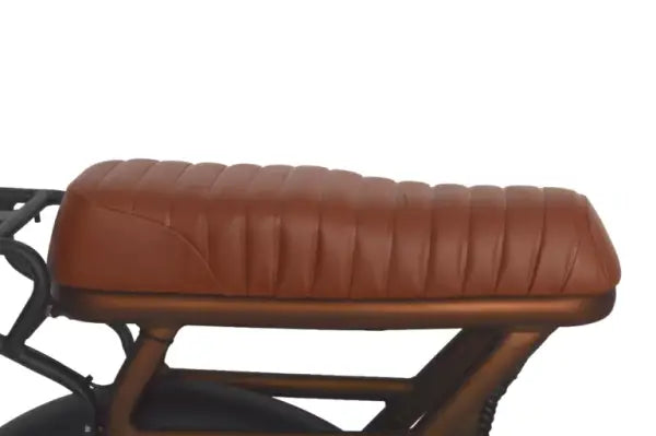 A perfect blend of vintage charm and modern power! With a luxurious Custom Large Black Leather Dual Seat for 2 Riders and matching grips, every detail exudes a timeless style that turns heads wherever you go. But don’t let its classic looks alone fool you: this bike has an edge! With updated specifications, it effortlessly conquers any terrain with superior power and efficiency. Say goodbye to the limits and embrace the exhilarating speed and agility offered by our cutting-edge technology.