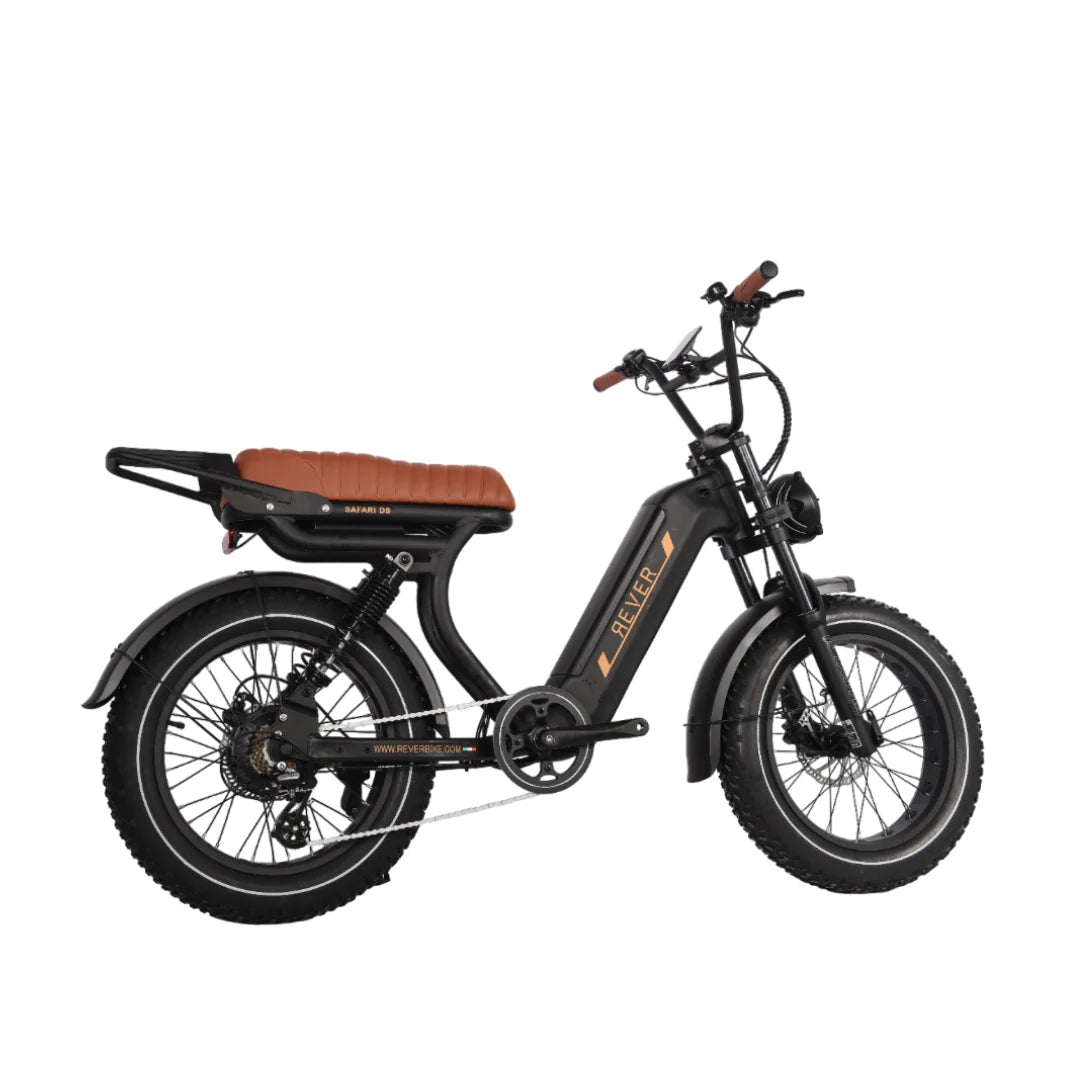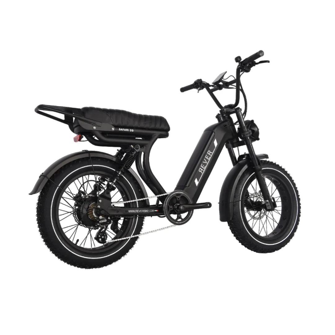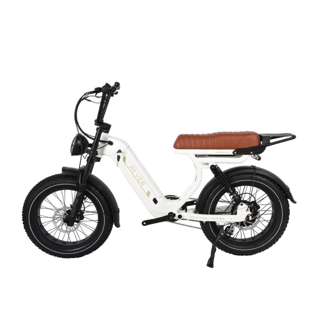REVER Safari DS delivers the perfect mix of vintage design and modern e-bike performance. With its step-through frame, dual suspension, and classic styling, this electric bike makes every ride—whether to work or out with friends—smooth, comfortable, and effortlessly stylish.