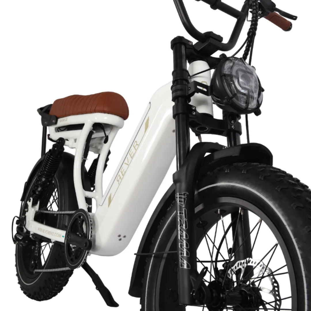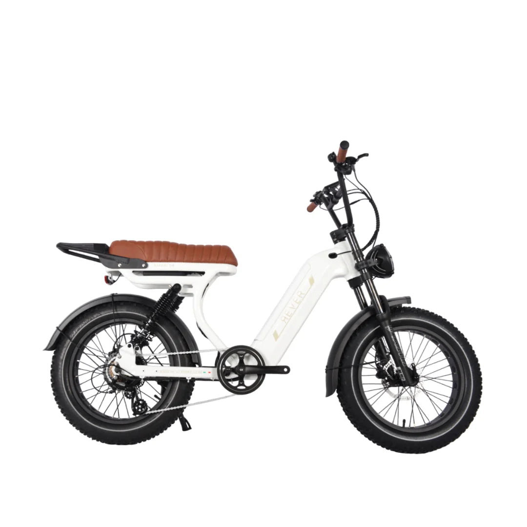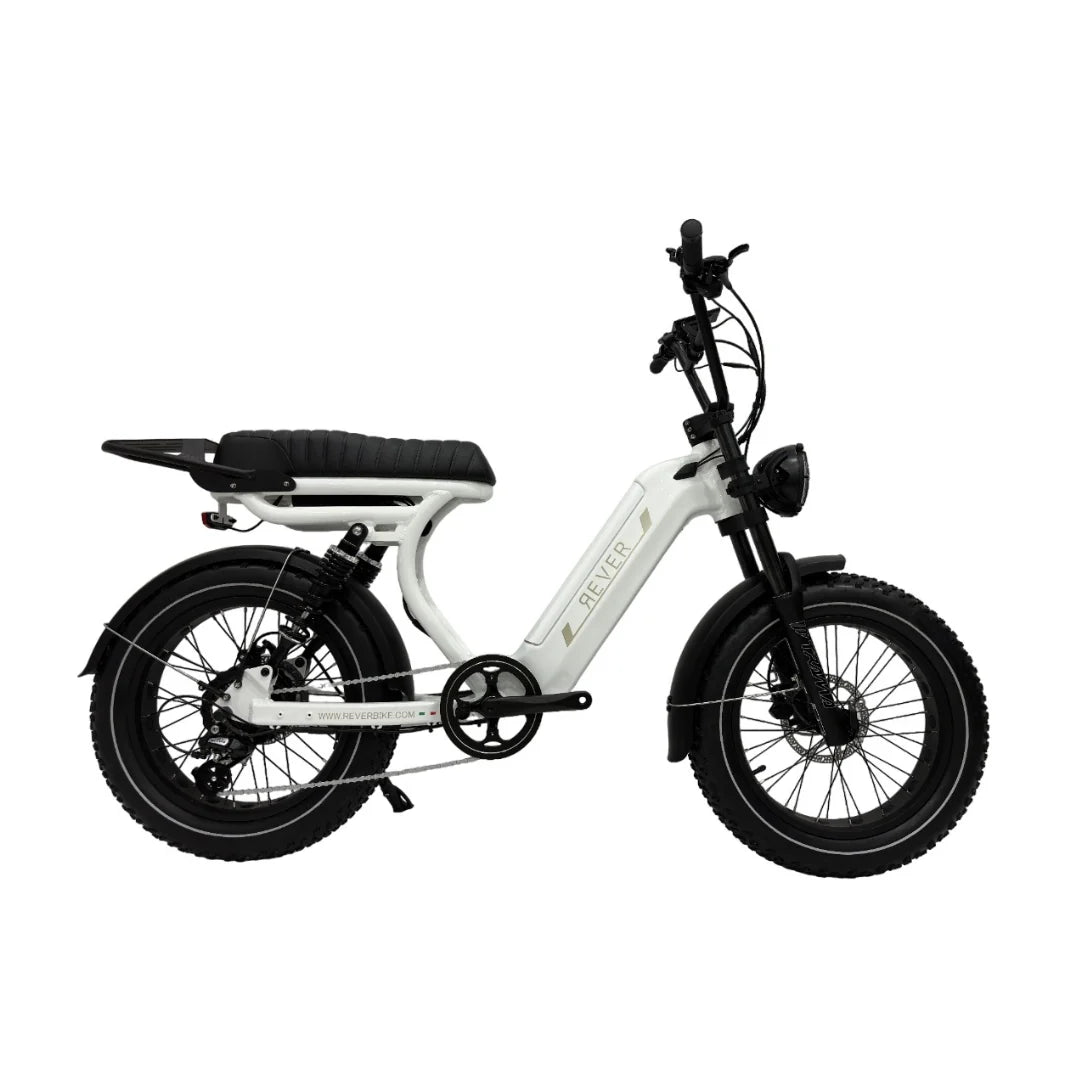 REVER Safari DS delivers the perfect mix of vintage design and modern e-bike performance. With its step-through frame, dual suspension, and classic styling, this electric bike makes every ride—whether to work or out with friends—smooth, comfortable, and effortlessly stylish.