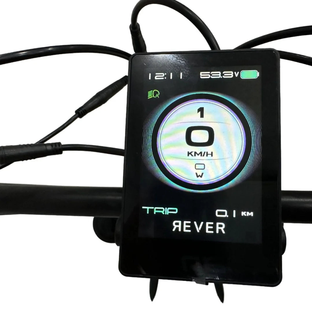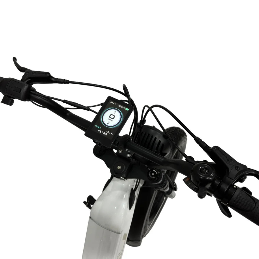 The integrated 48V 20Ah LG/Samsung battery sits neatly in the alloy down tube, providing an impressive 80–100 km range per charge. Wide 20×4″ Kenda tyres, alloy rims, and Tektro hydraulic disc brakes combine comfort, traction, and safety. The 7-speed Shimano drivetrain offers precise control, while the APT-860C colour display puts essential ride data at your fingertips. With thoughtful touches like fenders, rear rack, and front and rear lights, the REVER Safari DS blends timeless looks with everyday practicality.