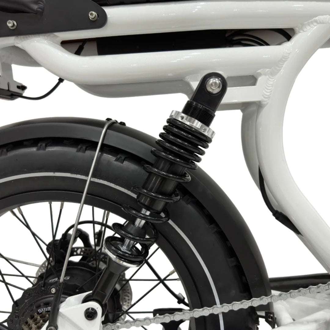 The Safari DS (Dual Suspension) takes the comfort and control of the original Safari to the next level. Its TRAMA FAT34D-20″ front suspension fork and rear spring shock work together to absorb bumps and uneven terrain, ensuring a steady and stable ride. Powered by a Bafang brushless motor (available in 250W, 500W, 750W, or 1000W), the Safari DS offers strong pedal assistance and can reach up to 25 km/h on roads—or 45 km/h on private property.