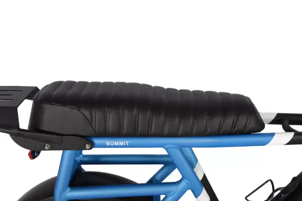 The SUMMIT features front suspension, offering enhanced comfort and performance by absorbing shocks from uneven terrain and providing a smoother ride.