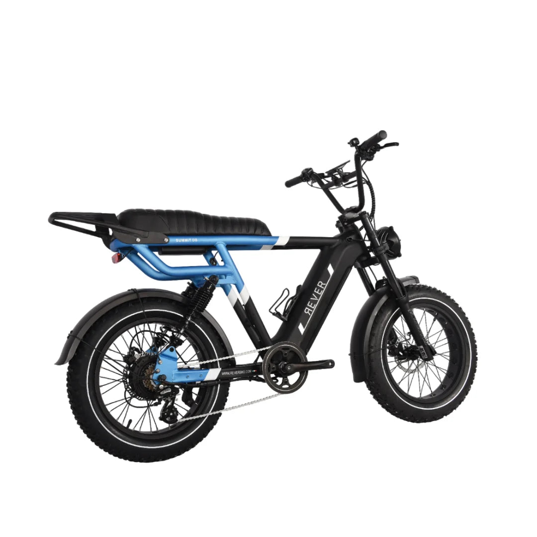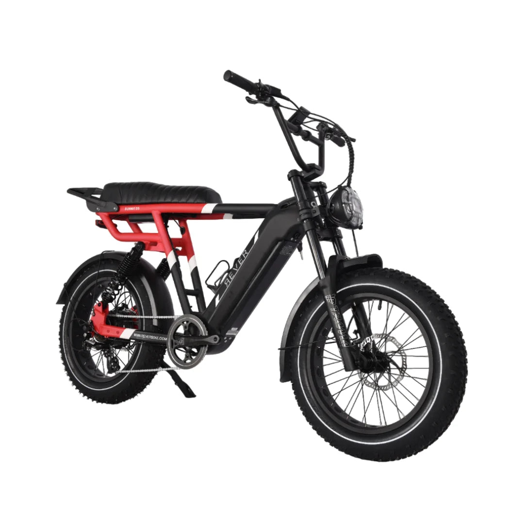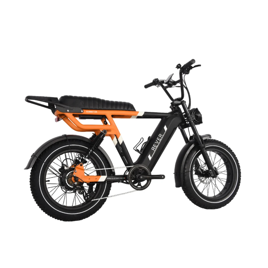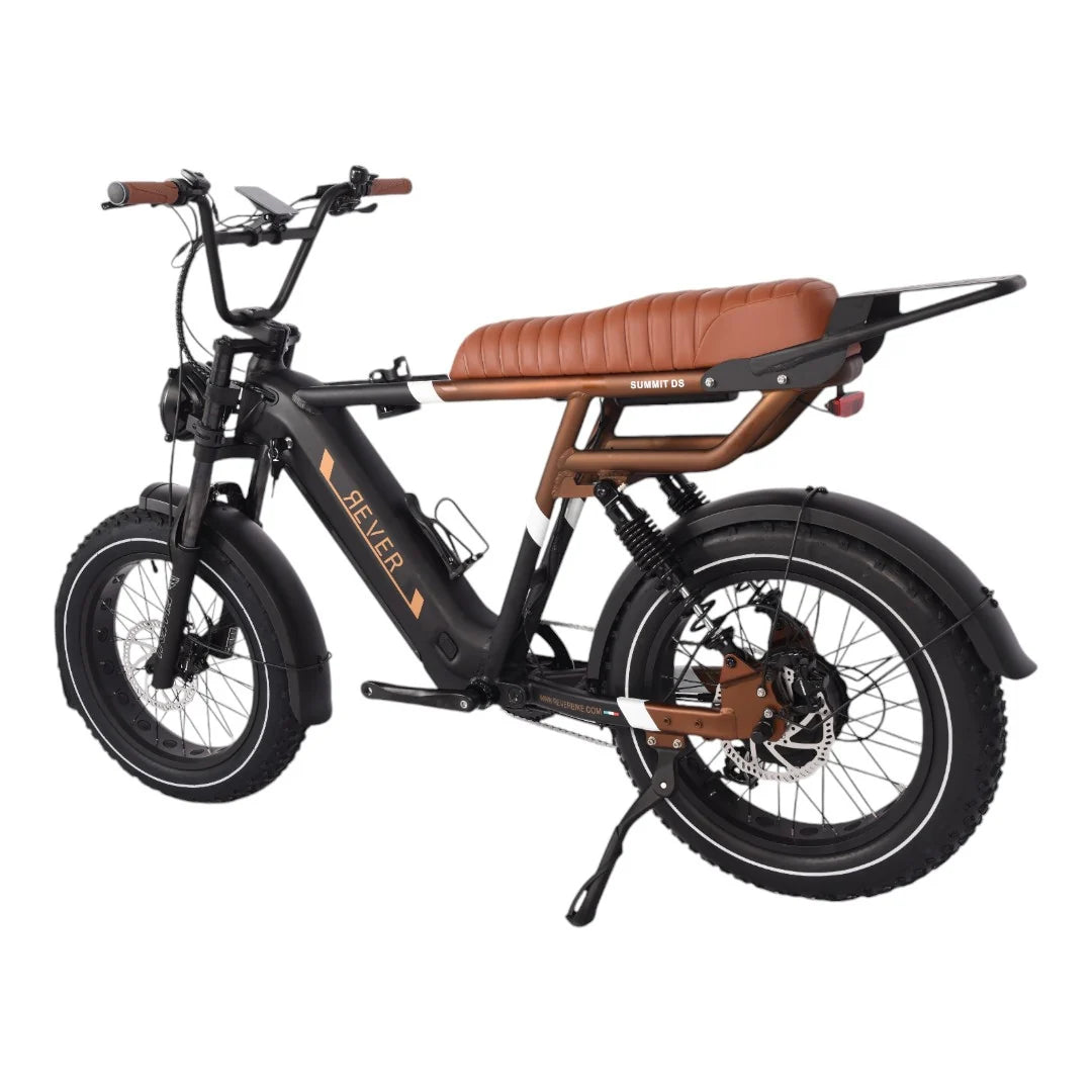 REVER Summit DS combines the charm of vintage design with advanced e-bike technology for riders who appreciate both style and performance. With its step-over frame and dual suspension system, the Summit DS delivers an exceptionally smooth ride, whether you’re navigating city streets or exploring off-road paths.